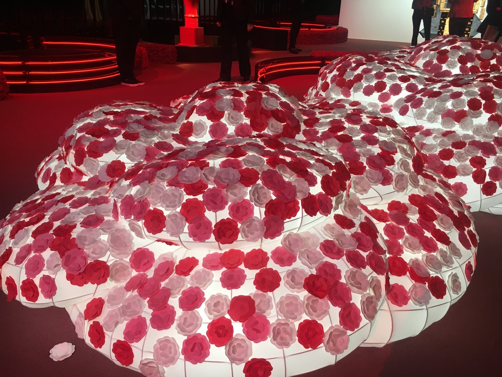 進門便可以看到這件由SK LAM所設計的藝術品「CAMELLIA LIGHT」,靈感取自中國的「天燈」,配上三色山茶花,代表著財富、美麗和家庭。參觀展覽的朋友們,還可以揀選其中一種顏色的山茶花張貼於「CAMELLIA LIGHT」,分享喜悅之餘,更能攜手打造這件獨一無二的藝術品。